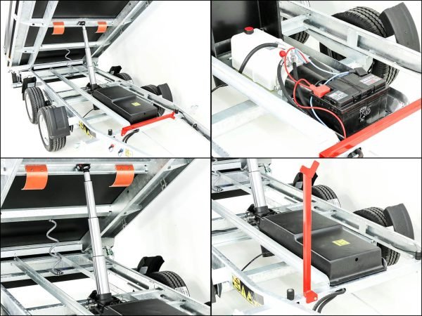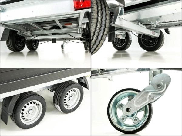 – Achse und Zugrohr komplett feuerverzinkt | Gummifederachse | V-Deichsel mit Zugkugelkupplung | Automatik-Schwerlaststützrad